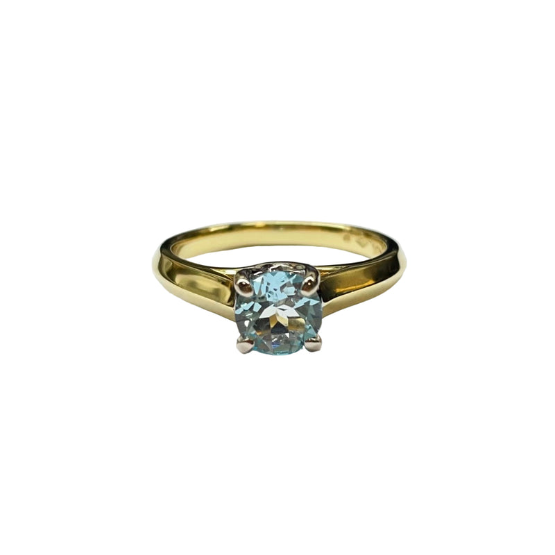 Aquamarine Solitaire Ring in 18K Yellow Gold